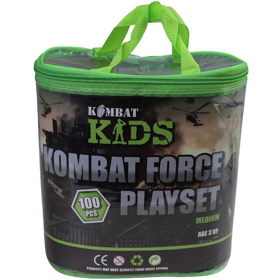 Modelli in plastica di soldati, sacchi di sabbia, edifici, cannoni, carri armati, ecc. Tutti i 100 pezzi sono contenuti in una borsa/sacca da trasporto con chiusura a zip. Adatto a bambini dai 3 anni in su. Ulteriori informazioni