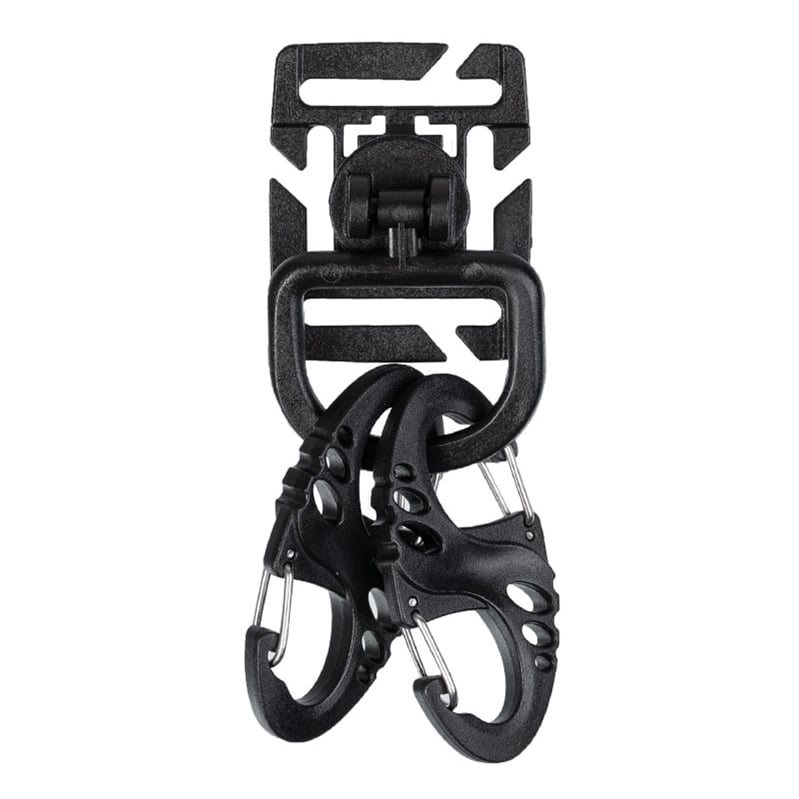 Pratico set tattico composto da una coppia di moschettoni a S e un sistema di fissaggio Duraflex. Questo sistema di fissaggio è costituito da una piattaforma e da un anello a D sganciabile. È pienamente compatibile con il sistema di aggancio modulare standard MOLLE/PALS e l'anello è girevole a 360°.