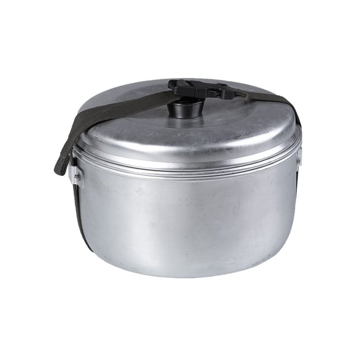 Contenuto della confezione: pentola da 1,0 l senza manico e coperchio, bollitore da 2,5 l senza manico, piatto da 20 cm di diametro, pinze per afferrare, cinghia di fissaggio con fibbia metallica. Ulteriori informazioni