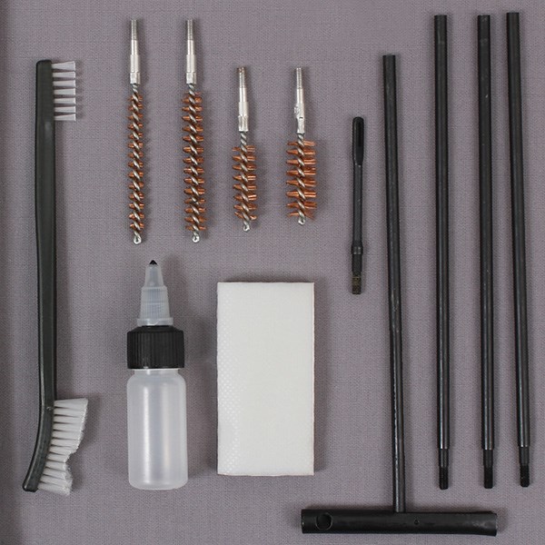 Set per la pulizia di armi di vari calibri (da .22 a .45). Dimensioni della custodia: 25 x 10 cm. Ulteriori informazioni