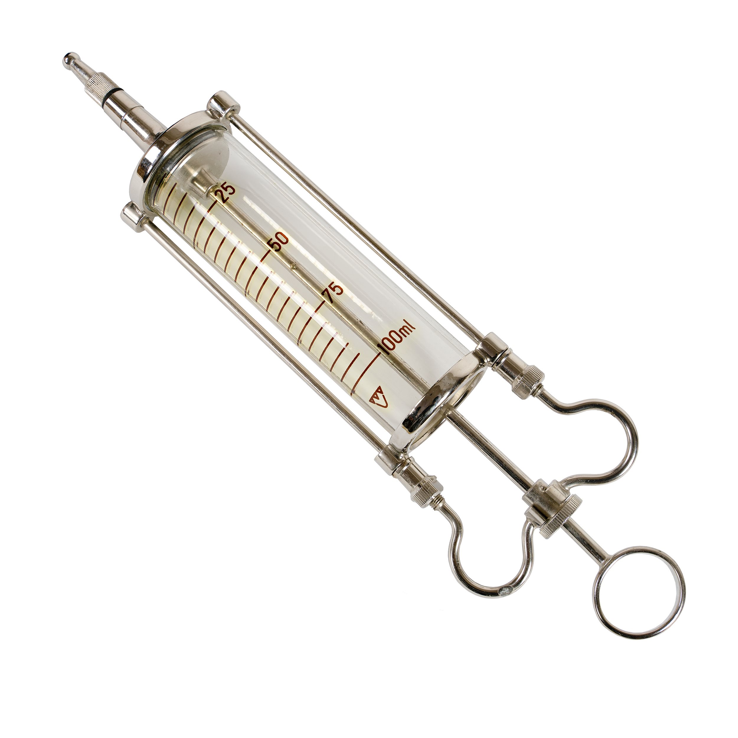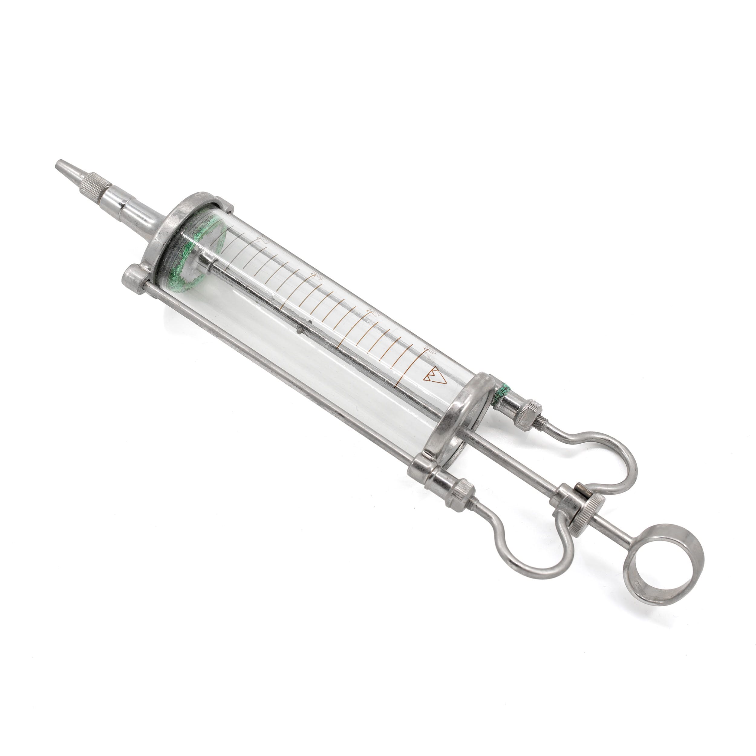 Siringa in vetro. Capacità di 100 ml. Materiale conservato a lungo termine senza garanzia di funzionalità. Ulteriori informazioni