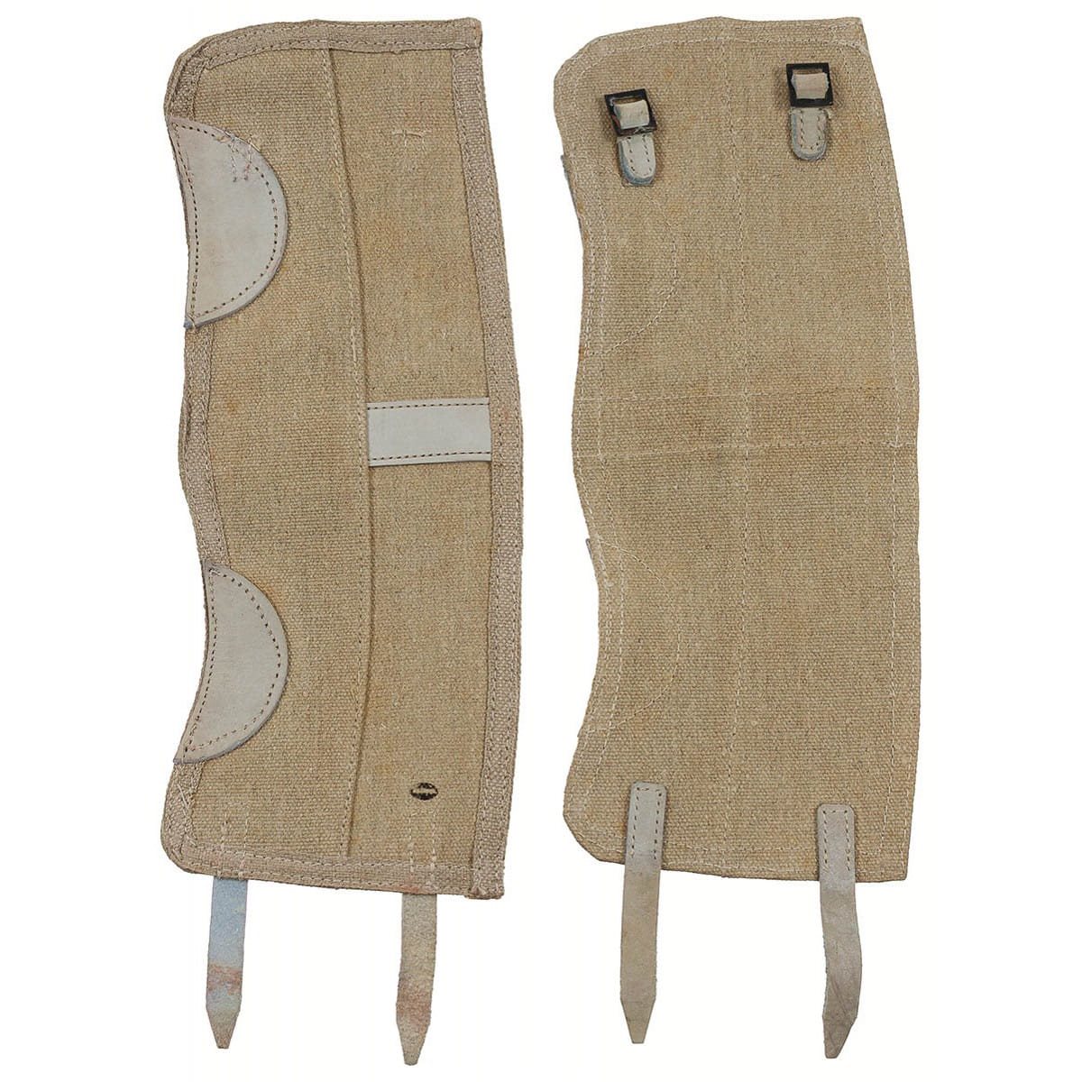 Classici gambali in tela con cinturino in pelle per la protezione delle caviglie. Ideali per rievocazioni militari. Altezza circa 14 cm.