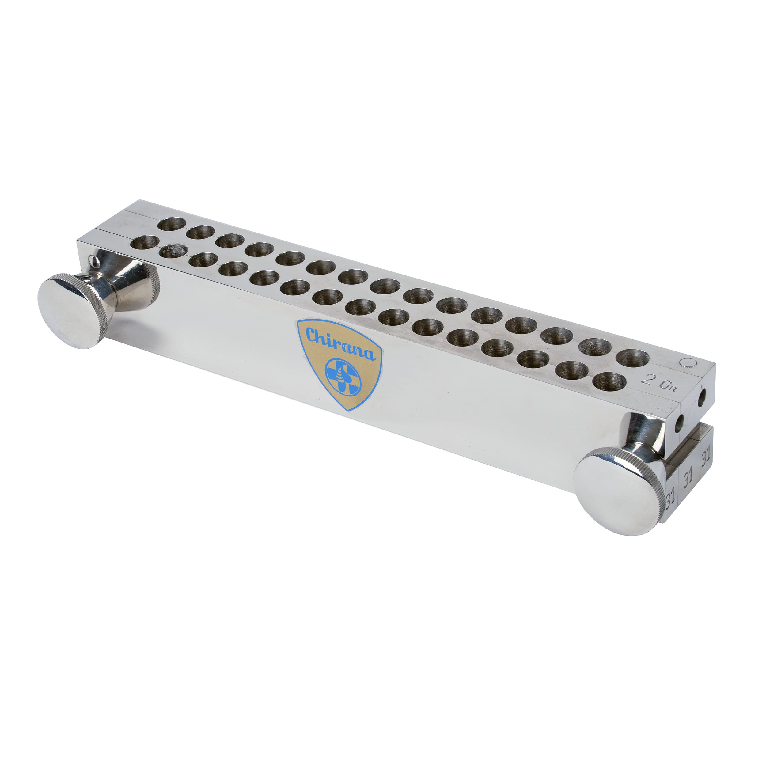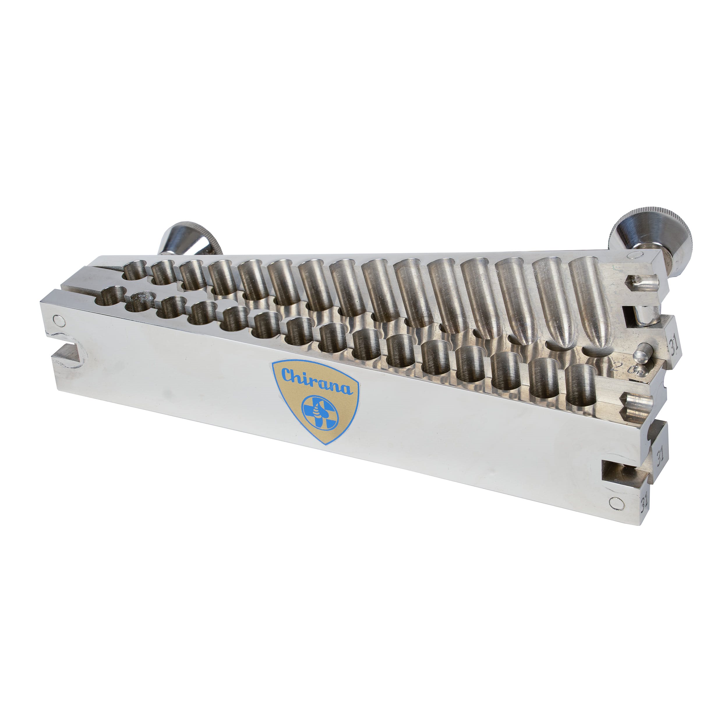 Stampo in acciaio inossidabile per la produzione di supposte, denominato "suppostiera". Per la produzione di 30 supposte del peso di 2 g. Ulteriori informazioni