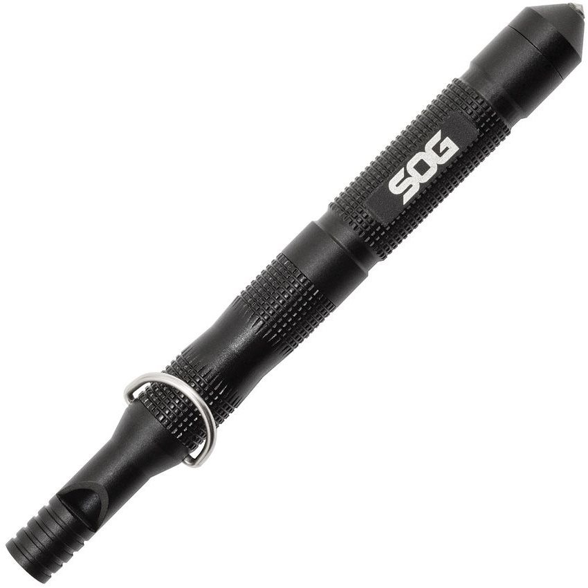 Strumento compatto che include un rompivetro, un accendino con scintilla, uno spazio per riporre l'accenditore e un fischietto. Lunghezza totale: 10,9 cm; peso: 19,84 g. Materiale: alluminio. Ulteriori informazioni