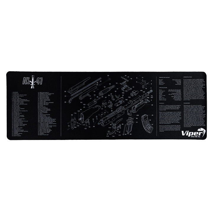 Ogni appassionato di armi apprezzerà questo pratico tappetino, che funge da superficie di lavoro per la manutenzione non solo delle armi lunghe. Sul tappetino troverete le parti smontate del leggendario fucile d'assalto AK-47 con la storia della produzione e le specifiche. Il tappetino è realizzato in gomma dello spessore di 3 mm. Pratico tappetino