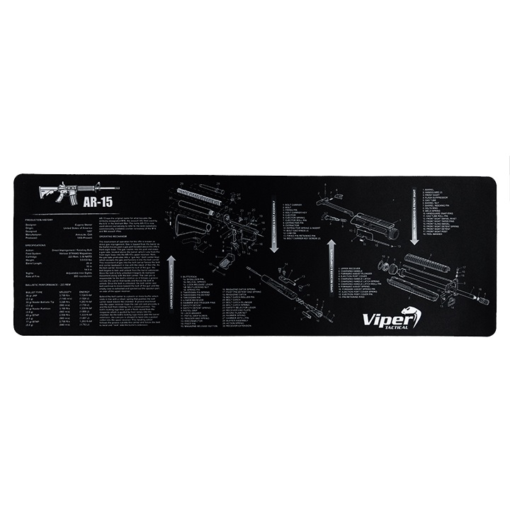 Ogni appassionato di armi apprezzerà questo pratico tappetino, che funge da superficie di lavoro per la manutenzione non solo delle armi lunghe. Sul tappetino troverete la composizione delle parti del fucile d'assalto semiautomatico AR-15 con la storia della produzione e le specifiche. Il tappetino è realizzato in gomma dello spessore di 3 mm. Pratico tappetino