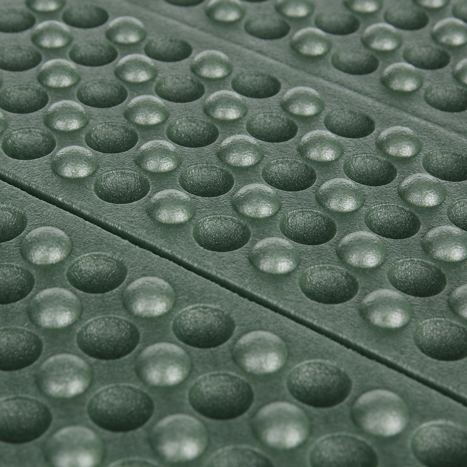 Tappetino pieghevole che misura 390 x 300 x 10 mm quando aperto e 300 x 100 x 40 mm quando chiuso. Realizzato in polietilene, un materiale leggero e morbido che resiste anche all'umidità. Ulteriori informazioni