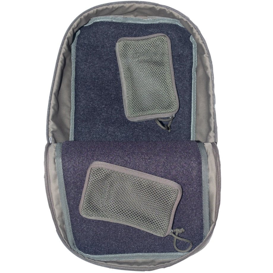 Tasca aggiuntiva che consente di aumentare il volume dello zaino della linea FLT del marchio BERGHAUS. L'interno della tasca è interamente rivestito in morbido pile che consente di fissare vari accessori compatibili, custodie (due custodie incluse nella confezione) e inserti. Grazie alla tracolla in dotazione, la tasca può essere indossata separatamente ed è realizzata in Cordura 560D certificata dalla Bundeswehr.