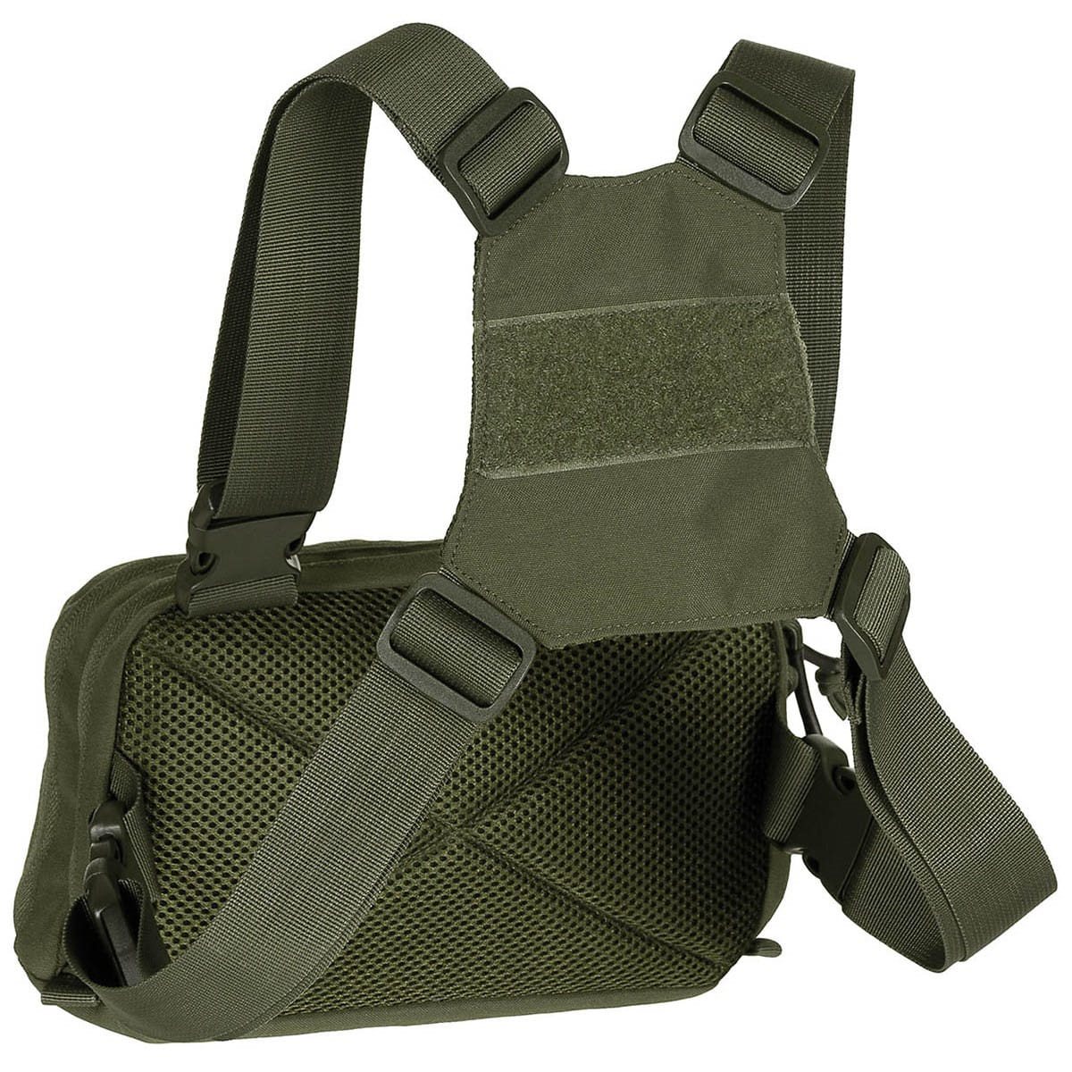 Tasca sul petto con sistema di trasporto a tracolla; grazie alle cinghie piatte può essere indossata anche sotto lo zaino, consentendo un facile accesso all'attrezzatura.