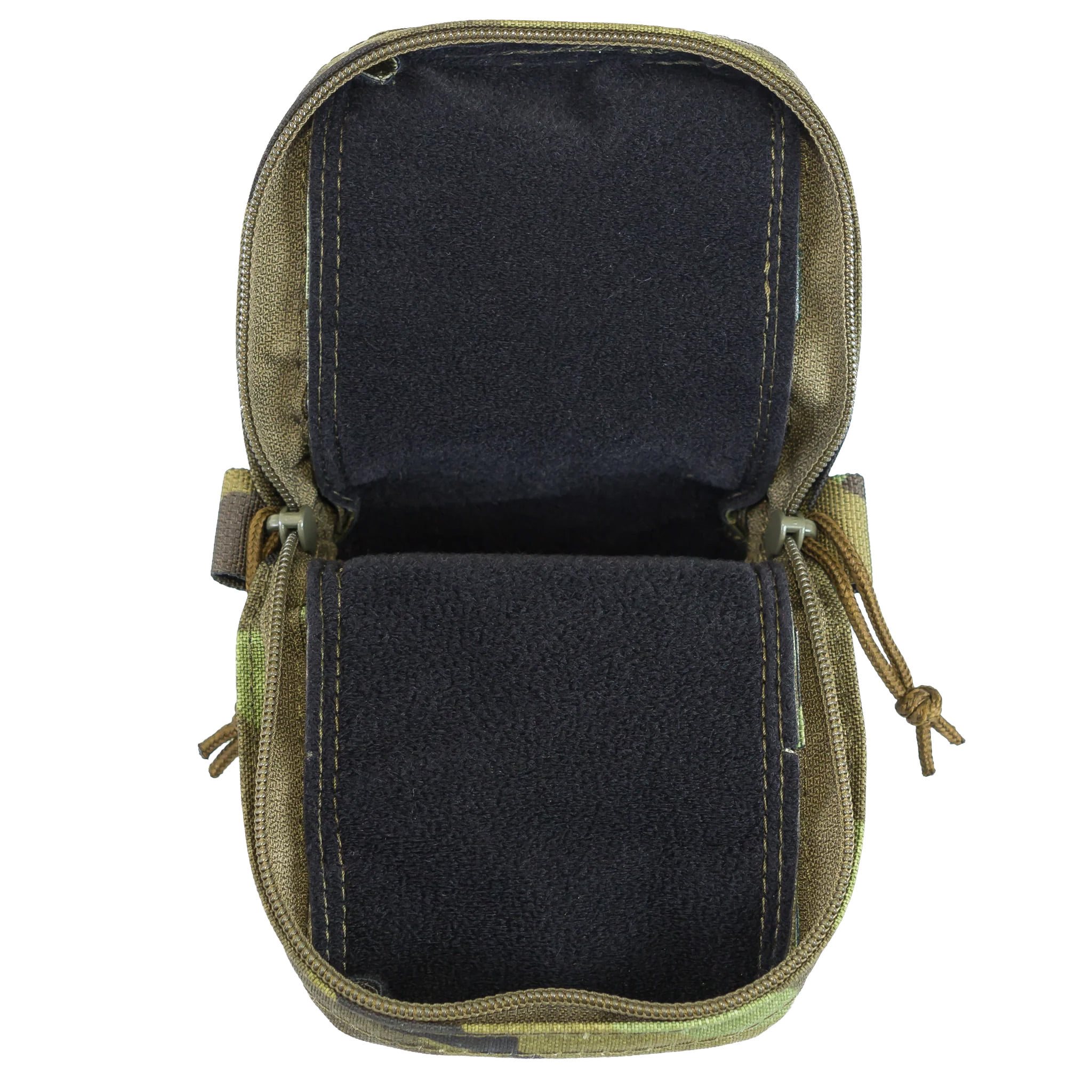 Tasca leggera e versatile che consente di organizzare in modo semplice e veloce l'attrezzatura trasportata. Grazie all'interfaccia posteriore MOLLE/PALS, la tasca può essere fissata a cinture da combattimento, zaini, giubbotti tattici e altre attrezzature compatibili. L'interno della tasca è accessibile tramite una cerniera a doppio cursore con manopole e all'interno troverete un morbido tessuto non tessuto destinato al fissaggio di ulteriori organizer e inserti. Sulla parte anteriore è cucita una robusta trama MOLLE/PALS di larghezza standard.