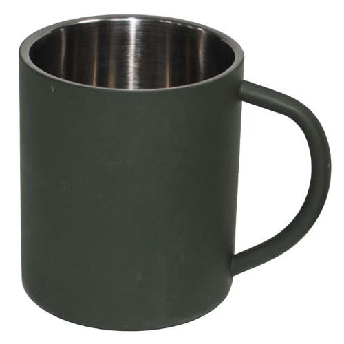 Tazza termica in acciaio inossidabile a doppio strato con superficie esterna color oliva opaco.