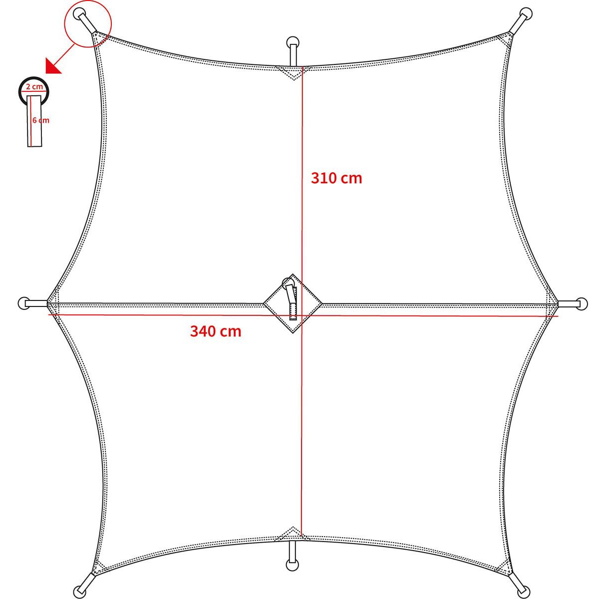 La speciale forma esagonale e le dimensioni lo rendono particolarmente adatto per amache o come telo da tenda, telo impermeabile, telo parasole. Totale di 9 anelli con ganci metallici, inclusi 8 picchetti e 8 corde di ancoraggio. Ulteriori informazioni