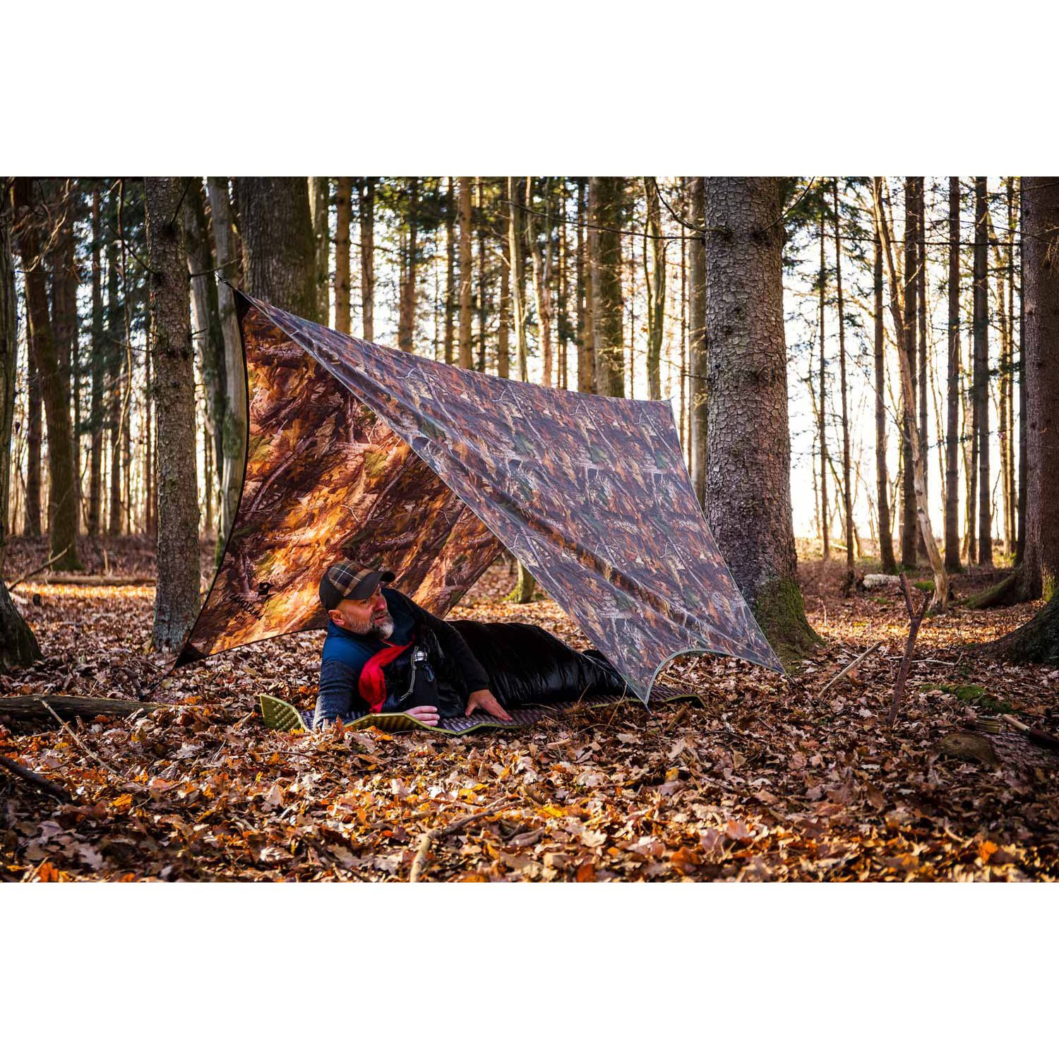 Telo impermeabile estremamente leggero e resistente, progettato per amache, utilizzabile anche come riparo indipendente. Il motivo boschivo combina foglie, alberi e colori tipici del bosco. Ulteriori informazioni
