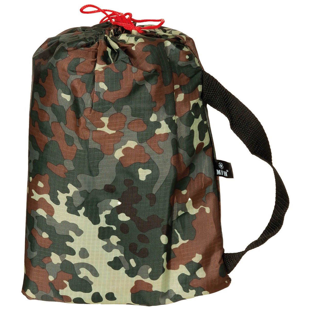 Telo resistente multiuso - equivalente moderno del classico telo da campeggio. Realizzato secondo il modello dei teli da bivacco dell'esercito britannico TARP/BASHA. Può essere utilizzato come riparo dalla pioggia e dal sole, telo di copertura o telo impermeabile. Per il fissaggio sono disponibili nove passanti in tessuto, attraverso i quali è possibile far passare, ad esempio, una corda da paracadute o fissare elastici. Facile da riporre, fornita in una borsa da trasporto.