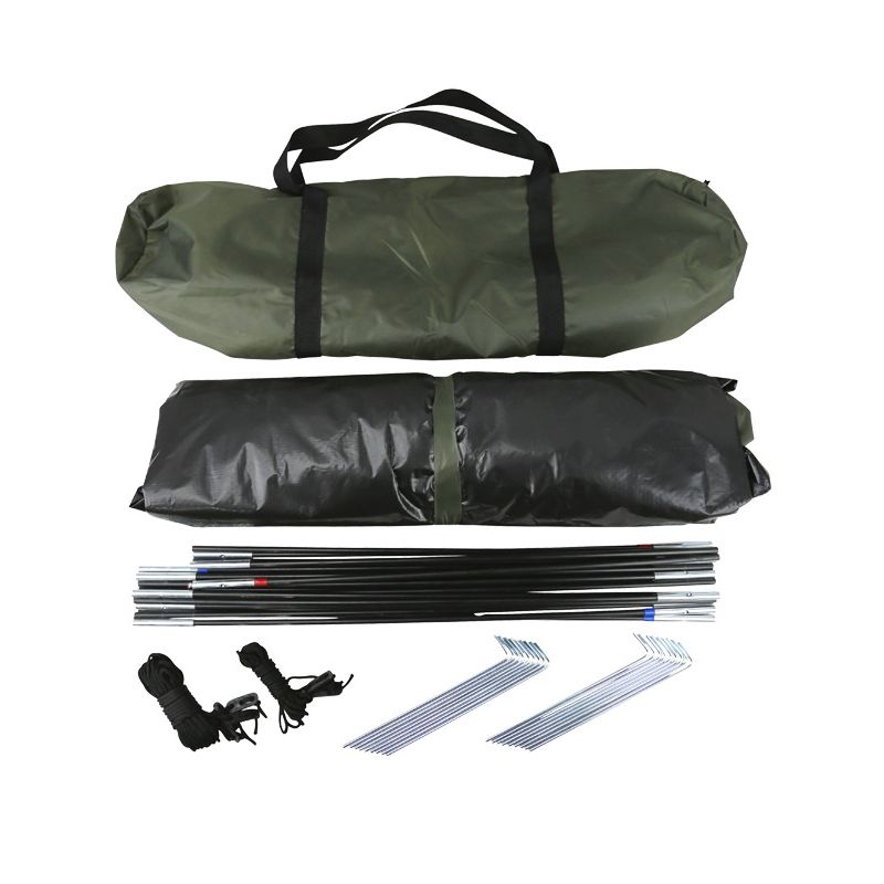 Tenda leggera a doppio strato in una pratica custodia. Dimensioni della tenda 140 x (100+200) x 100 cm, dimensioni da chiusa circa 62 x 14 cm, peso totale 2,4 kg. Materiale 170T e 190T poliestere. Ulteriori informazioni
