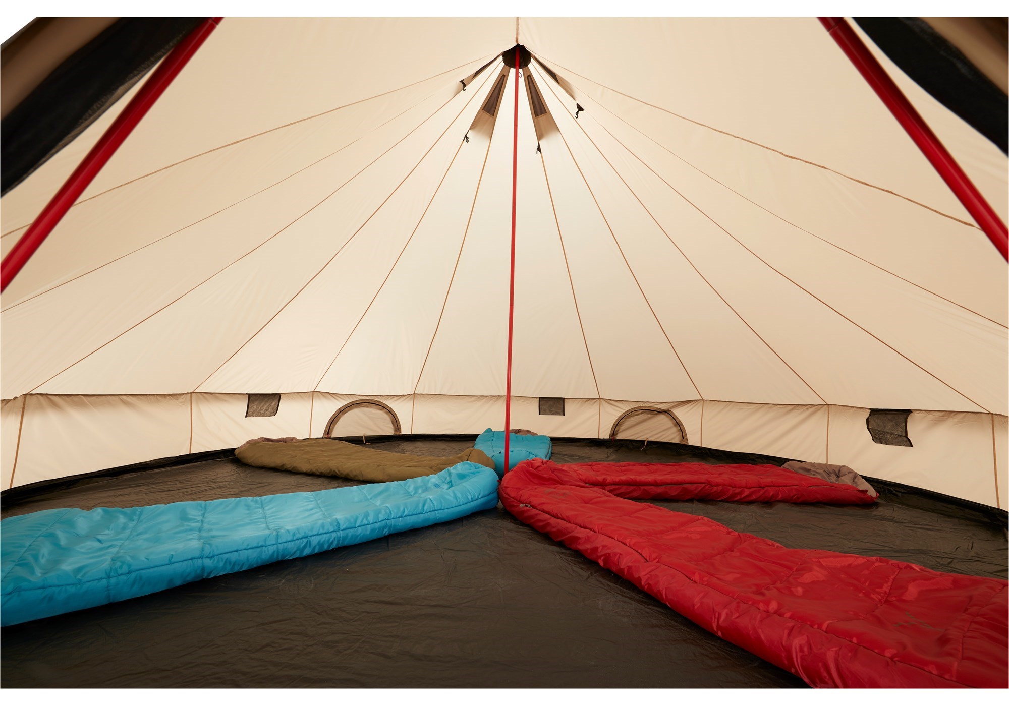 GRAND CANYON INDIANA 10 è una tenda di tipo yurta (tenda con base). È realizzata in tessuto poliestere, è facile da montare grazie al palo centrale in acciaio e la base aumenta notevolmente la superficie utile. La tenda è dotata di zanzariera integrata.