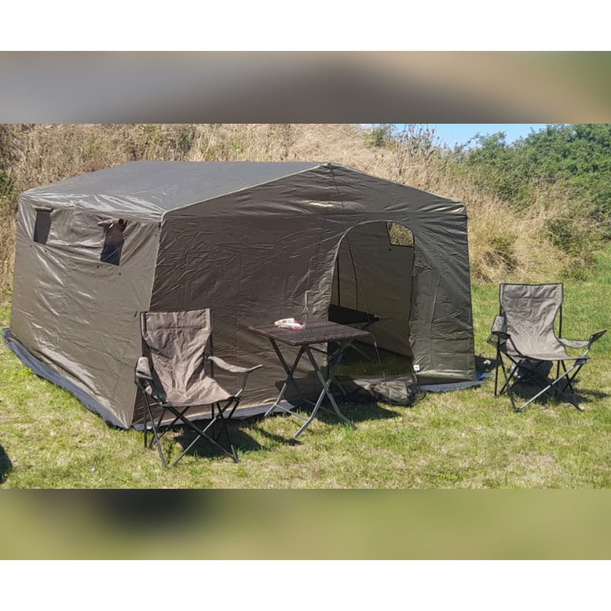 Tenda grande per un gruppo, adatta per un massimo di 6 persone. Struttura semplice ma funzionale. La tenda è confezionata in una custodia da trasporto che, grazie alle cinghie, può essere comodamente trasportata come una borsa. La custodia è di dimensioni generose, il telo e i pali della tenda non riempiono completamente lo spazio, il che può facilitare notevolmente il riporre e riporre la tenda. i pali della tenda non riempiono completamente lo spazio, il che può facilitare notevolmente il ripiegamento e lo stoccaggio della tenda. La colonna d'acqua è di 2000 mm.