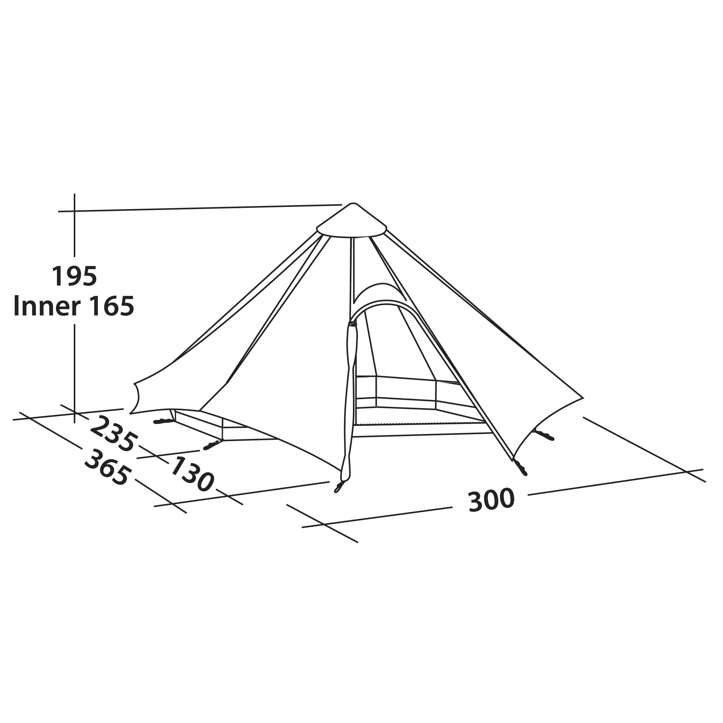 Il versatile tepee in poliestere Green Cone PRS presenta un'ampia altezza interna, un ampio portico e uno spazio interno per quattro persone. È dotato di un palo centrale spostato per un facile accesso. Questo solleva la parte esterna da terra e crea uno spazio che favorisce la circolazione dell'aria. Per risparmiare peso, rimuovere la parte interna e regolare il palo centrale telescopico in modo che la parte esterna sia vicina al suolo: una tenda da bivacco ideale. Piccoli pali angolari sono cuciti all'interno scuro e creano una parete che aggiunge ulteriore spazio utilizzabile.