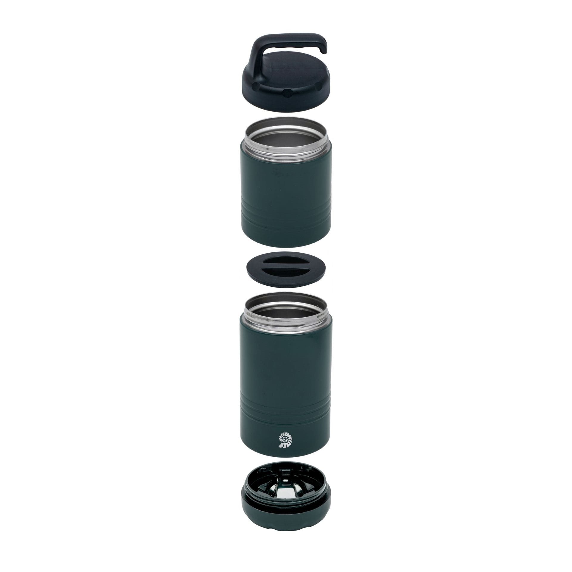 Nella parte inferiore del coperchio è integrato un cucchiaio pieghevole in acciaio inossidabile, in modo da avere sempre tutto il necessario a portata di mano. L'ampia apertura facilita il riempimento, il consumo e la pulizia. La filettatura è compatibile con altri contenitori della stessa serie, consentendo di impilarli.