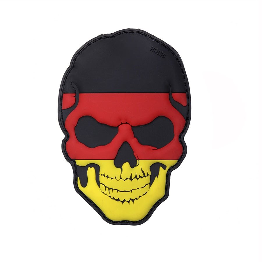 Toppa 3D in plastica con teschio su velcro nei colori della Germania. Dimensioni circa 9 x 5 cm.