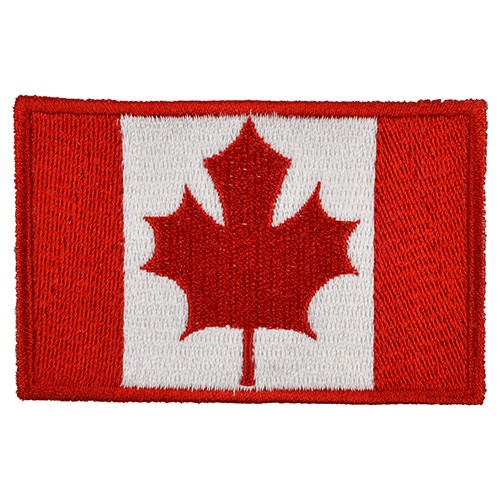 Toppa con bandiera canadese. Il nome Canada deriva dalla lingua delle prime popolazioni (più precisamente dalla tribù degli Huron) e significa kanata. In italiano può essere tradotto come "villaggio", "gruppo di villaggi" o "insediamento". Dimensioni: circa 50 x 75 mm.