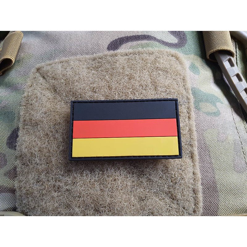Toppa in plastica sul retro con chiusura in velcro. Bandiera tedesca - versione colorata. Dimensioni: 5,5 x 3 cm.