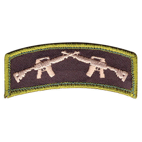 Toppa in velcro con raffigurazione di due fucili incrociati. Dimensioni 3 x 7,5 cm. Ulteriori informazioni
