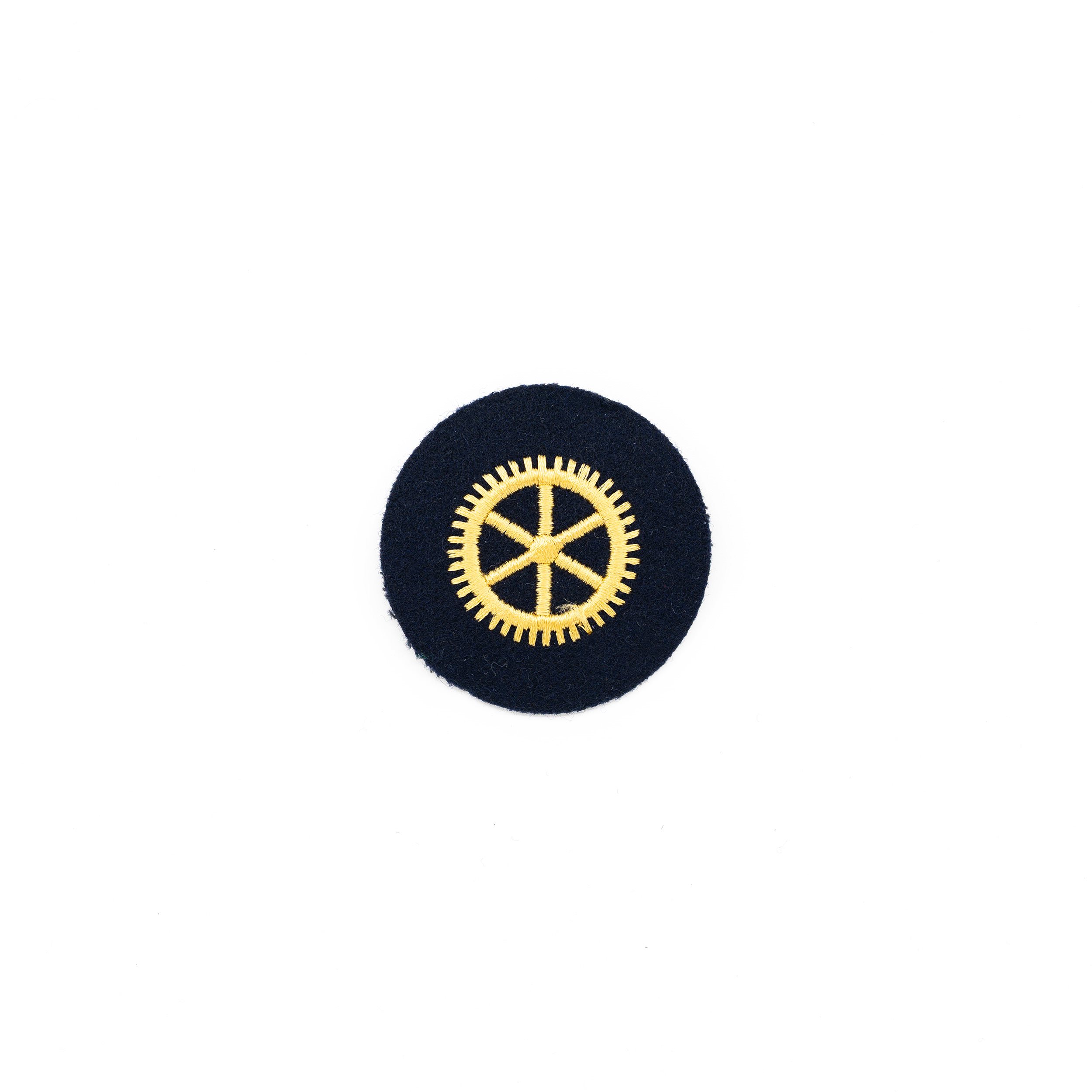 Distintivo originale della Marina Militare della NVA (Germania Est) - specialista tecnico. Ricamo dorato su fondo in feltro blu scuro.
