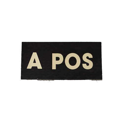 Patch con gruppo sanguigno su velcro. Visibile nello spettro infrarosso (IR). Dimensioni circa 5 x 2,5 cm.
