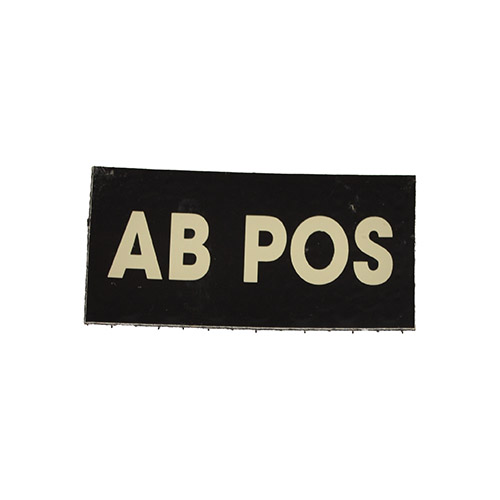 Patch con gruppo sanguigno su velcro. Visibile nello spettro infrarosso (IR). Dimensioni circa 5 x 2,5 cm.