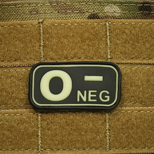 Toppa in plastica con indicazione del gruppo sanguigno. Dimensioni circa 5 x 2,5 cm, con chiusura in velcro sul retro. Ulteriori informazioni