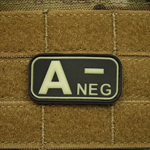 Toppa in plastica con indicazione del gruppo sanguigno. Dimensioni circa 5 x 2,5 cm, con chiusura in velcro sul retro. Ulteriori informazioni