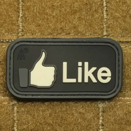 Toppa in plastica con motivo "LIKE". Dimensioni circa 5 x 2,5 cm, con velcro sul retro.