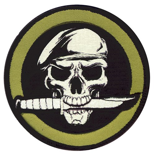 Toppa circolareSKULL/KNIFE - TESTA DI MORTE CON COLTELLO dell'azienda americanaROTHCO.