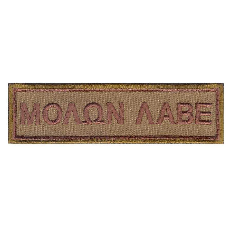 Toppa con scritta ricamata "Molon Labe" su velcro. Si fissa facilmente sui pannelli VELCRO degli indumenti o dell'equipaggiamento. Dimensioni 2,5 x 10 cm. Ulteriori informazioni