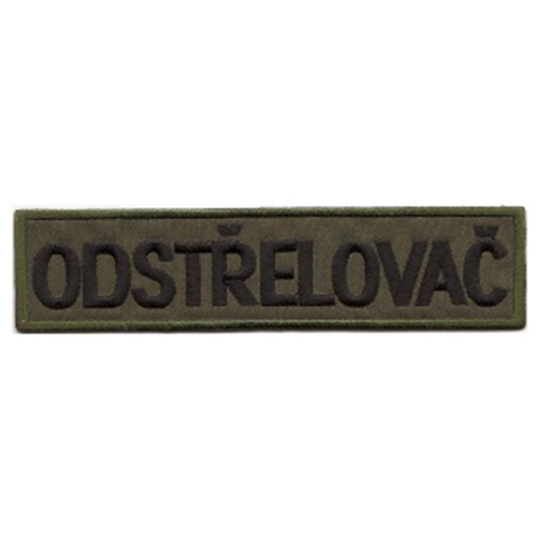 Patch ricamato in tessuto ODSTŘELOVAČ - verde. Dimensioni: 34 x 138 mm.