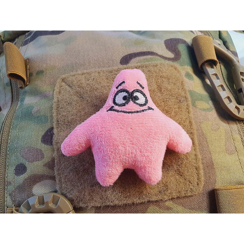 Stella marina rosa in peluche su pannello velcro per il fissaggio con chiusura a strappo. Accessorio originale per l'equipaggiamento tattico, grazie al quale non passerete inosservati.