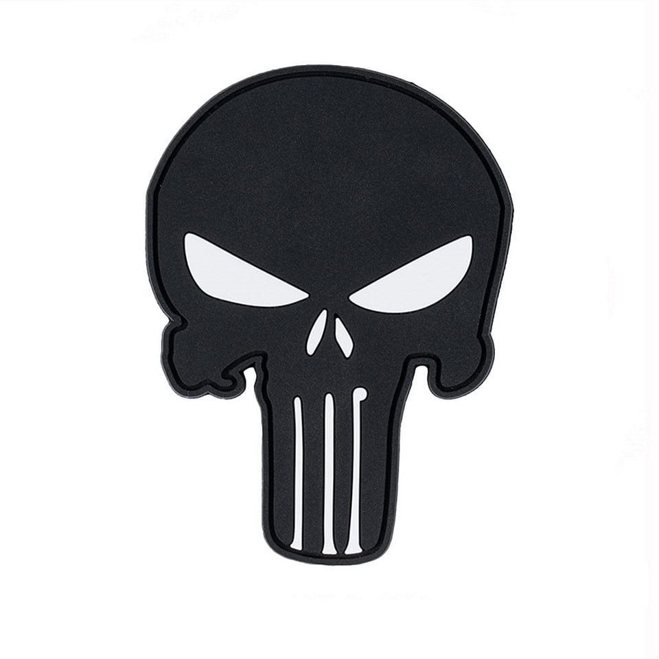 Toppa in plastica con chiusura in velcro a forma di teschio. Materiale: PVC. Dimensioni: circa 6,5 x 8,8 cm.