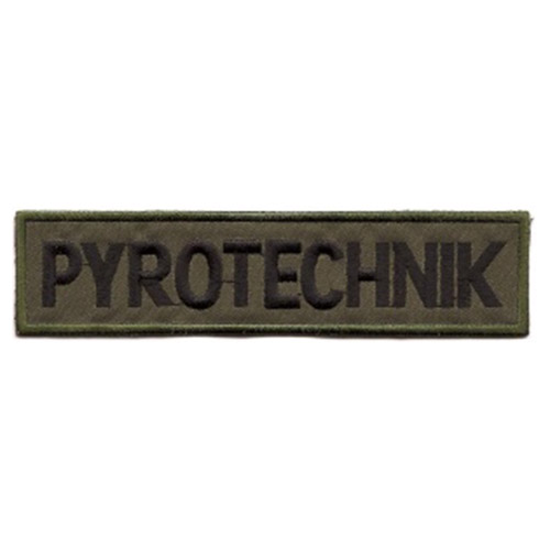 Toppa grande con la scritta PYROTECHNIK su sfondo verde ricamata in nero. Dimensioni circa 7x34 cm. Chiusura in velcro. Ulteriori informazioni