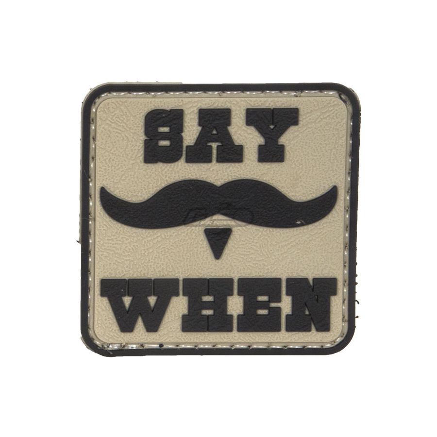 Toppa in plastica con chiusura in velcro raffigurante un baffo e la scritta SAY WHEN (in italiano "dì quando"). Una toppa elegante non solo per chi ha la barba. Starà benissimo sul Suo cappellino, sulla Sua giacca o sul Suo zaino.