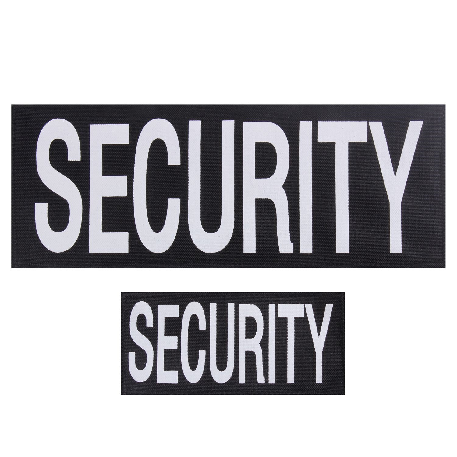 Set di due patch con la scritta SECURITY. Piccola 60 x 145 mm adatta per la parte anteriore. Grande 100 x 270 mm adatta per la parte posteriore. Entrambe le patch sono dotate di velcro.