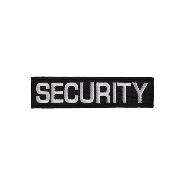Patch SECURITY in tessuto ricamato, con chiusura in velcro, dimensioni 120 mm x 30 mm.