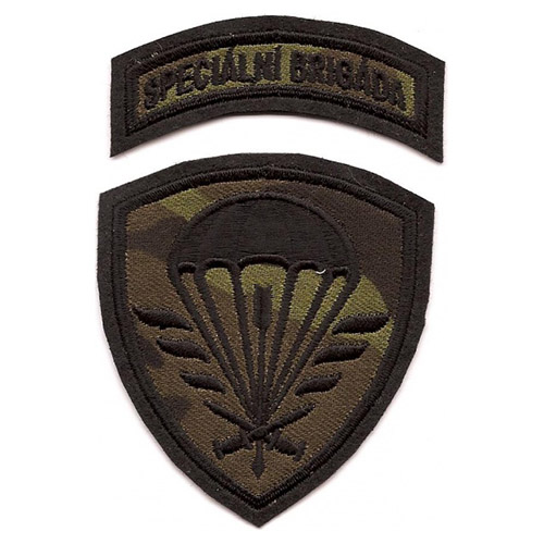 Patch in due parti SPECIAL BRIGADE dell'Esercito della Repubblica Ceca. Versione mimetica modello 95. Dimensioni circa 7 x 8 e 7 x 2,5 cm.
