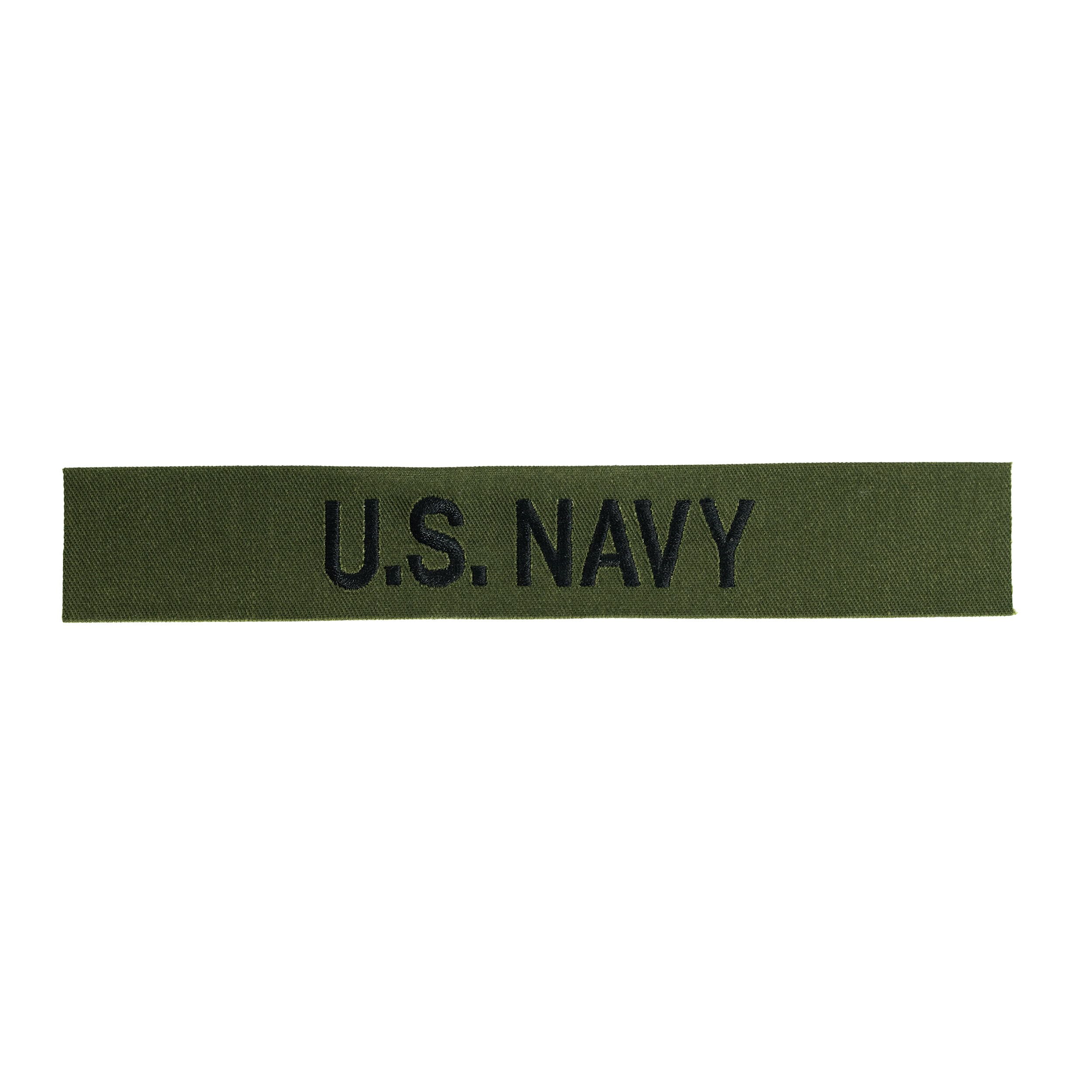Toppa destinata ad essere cucita sull'uniforme o su abiti civili. Scritta U.S. NAVY su sfondo color oliva. Realizzazione di alta qualità e precisione.