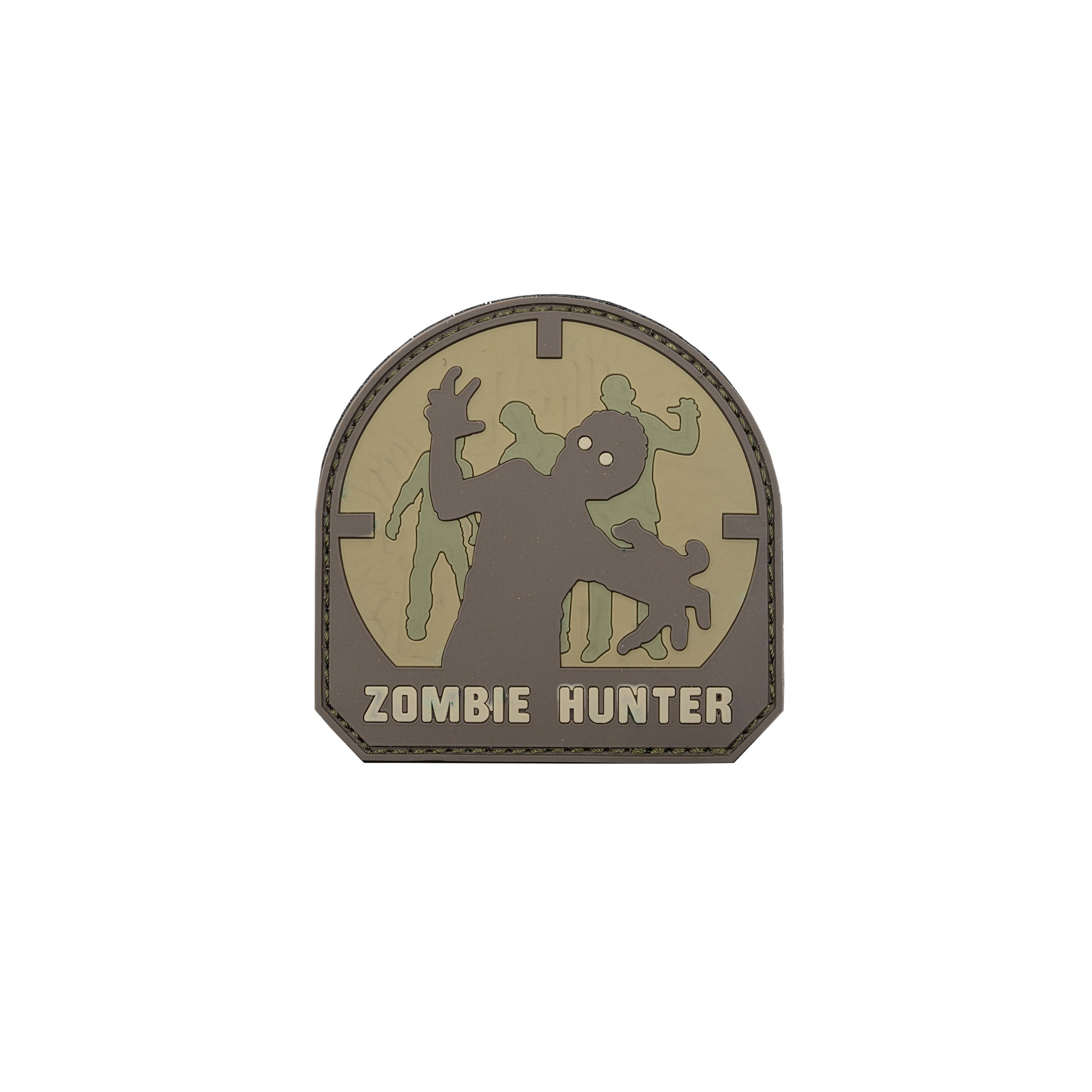 Toppa in plastica Zombie Hunter. Dimensioni circa 6,8 x 6,7 cm, con chiusura in velcro sul retro.