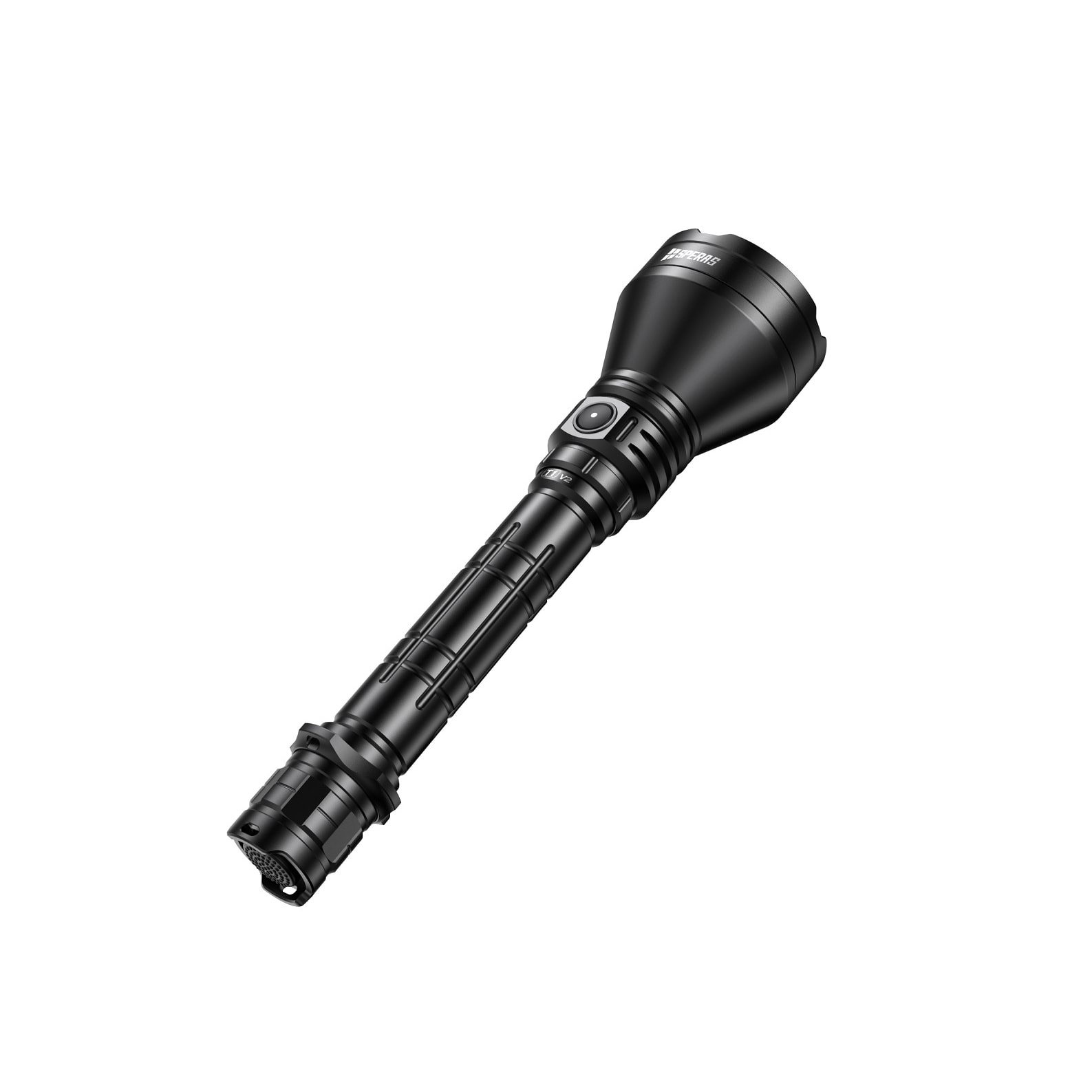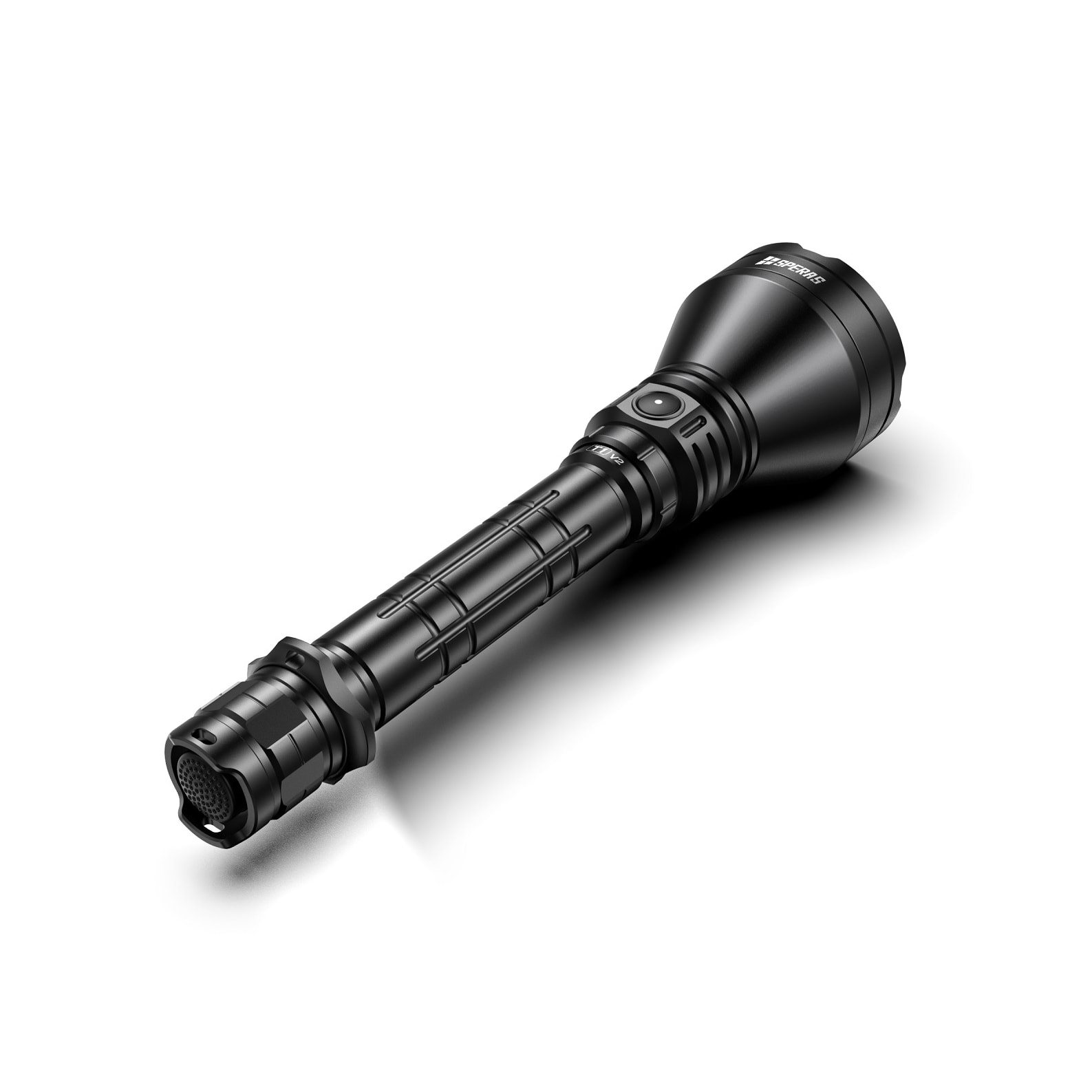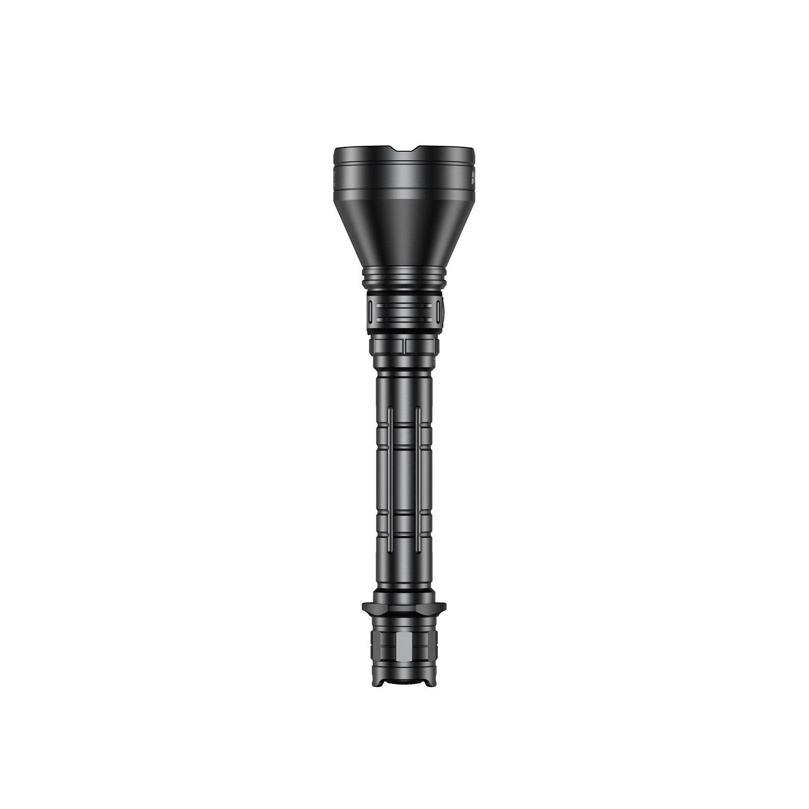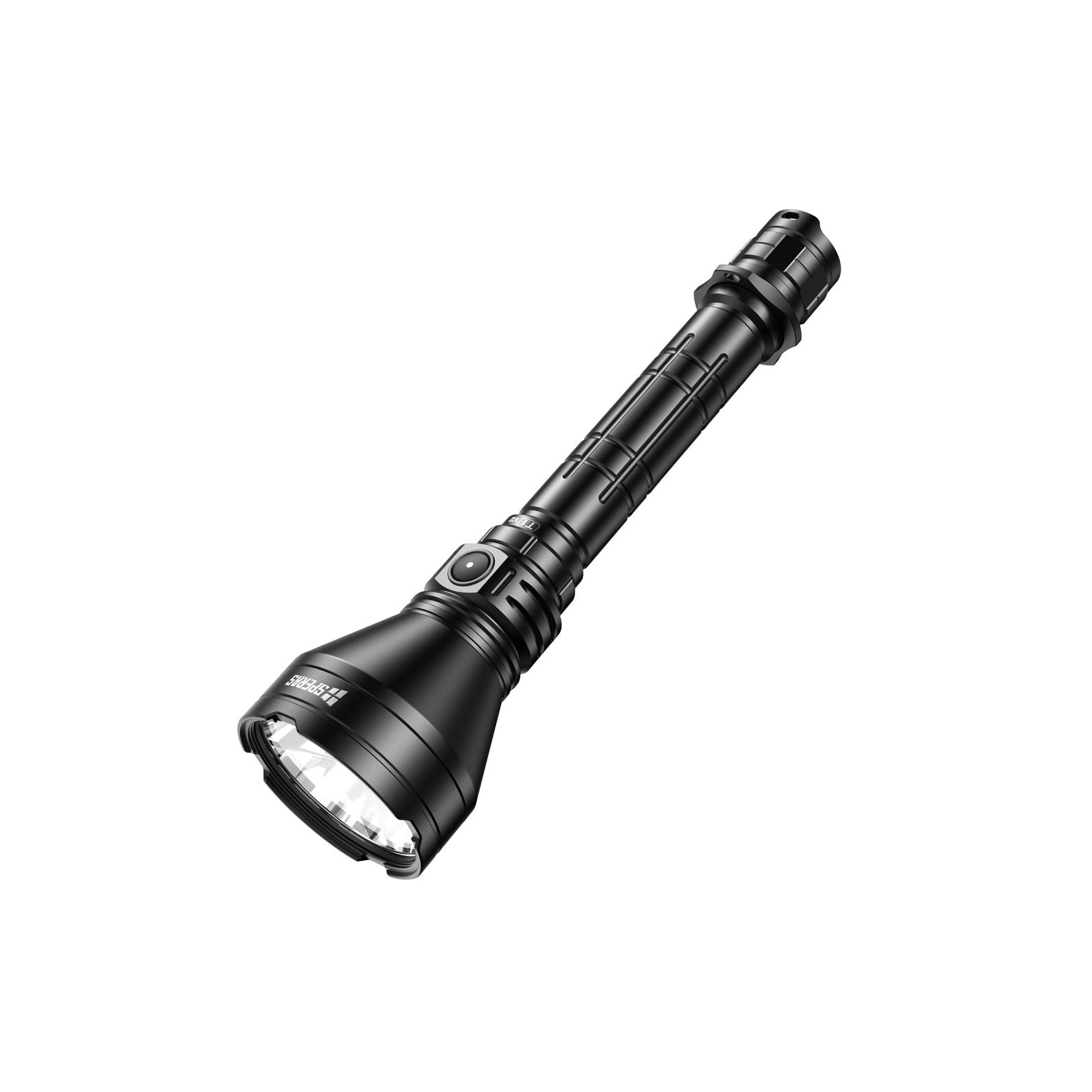 Potente torcia da caccia che utilizza LED S50 di alta qualità per raggiungere una potenza massima di 1400 lumen con una portata di 1400 metri. Il corpo della torcia è realizzato in resistente lega di alluminio aeronautico con superficie di tipo III che protegge dai graffi e grado di protezione IP68, che garantisce resistenza all'acqua e alla polvere. La testa della torcia è dotata di sporgenze che proteggono la lente e il riflettore da eventuali danni. Per cambiare modalità, la torcia è dotata di un pulsante di comando nella parte inferiore. Questo pulsante è largo 18 mm e gommato in modo da poter essere facilmente azionato anche con i guanti. Sono disponibili in totale sei modalità di illuminazione.