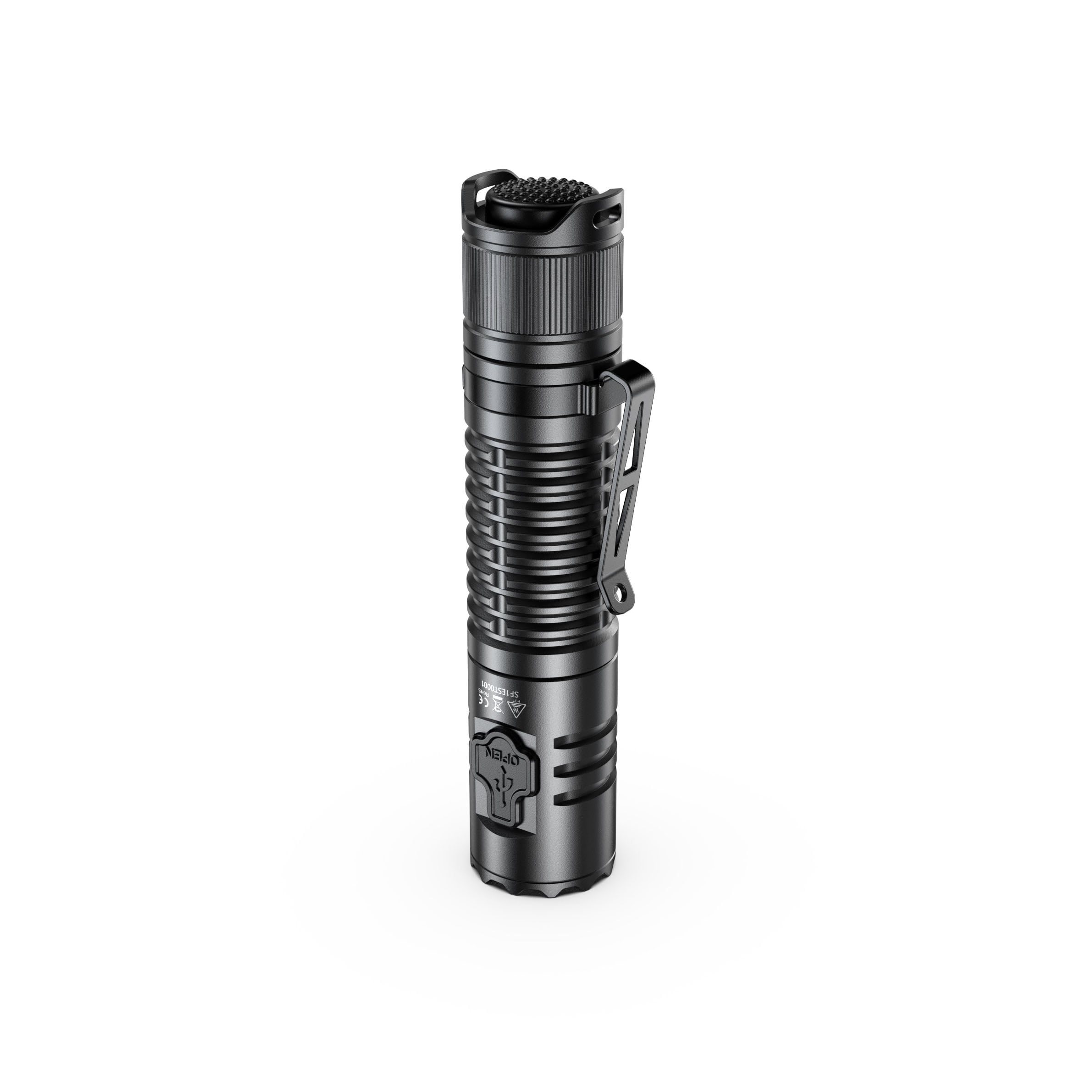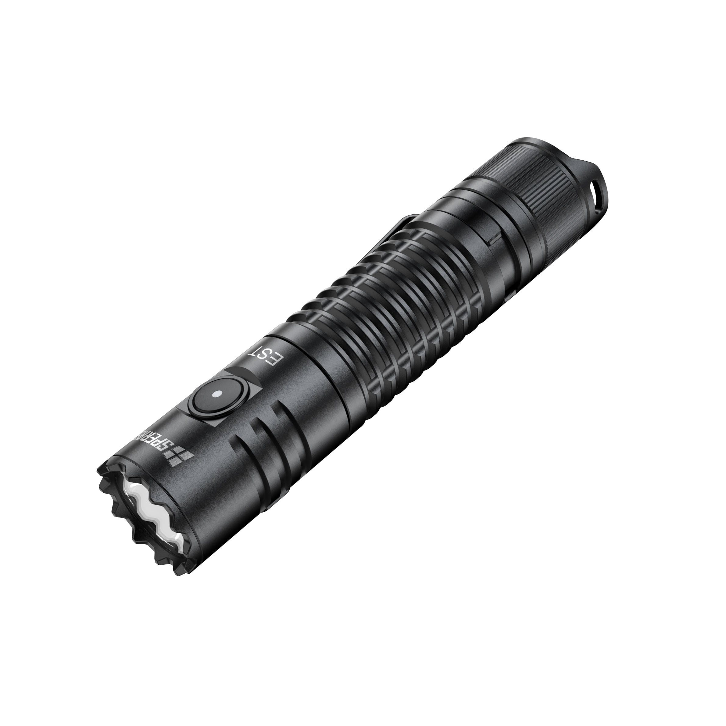 Potente torcia tattica che utilizza diodi LED LUMINUS SST40 di alta qualità, lenti TIR e riflettore SMO per raggiungere una potenza massima di 1900 lumen con una portata di 211 metri. Il corpo della torcia è realizzato in resistente lega di alluminio aeronautico 6061 con grado di protezione IP68, che garantisce resistenza all'acqua e alla polvere. La testa della torcia è dotata di sporgenze che possono essere utilizzate, se necessario, per rompere il vetro o per autodifesa. Sul corpo è presente anche una clip metallica che consente il fissaggio all'attrezzatura. Per cambiare modalità, la torcia è dotata di due pulsanti. Il pulsante laterale superiore è combinato con l'indicatore dello stato della batteria e della sua carica. Il pulsante inferiore è largo 18 mm e gommato in modo da poter essere facilmente azionato anche con i guanti. Sono disponibili in totale sei modalità di illuminazione.