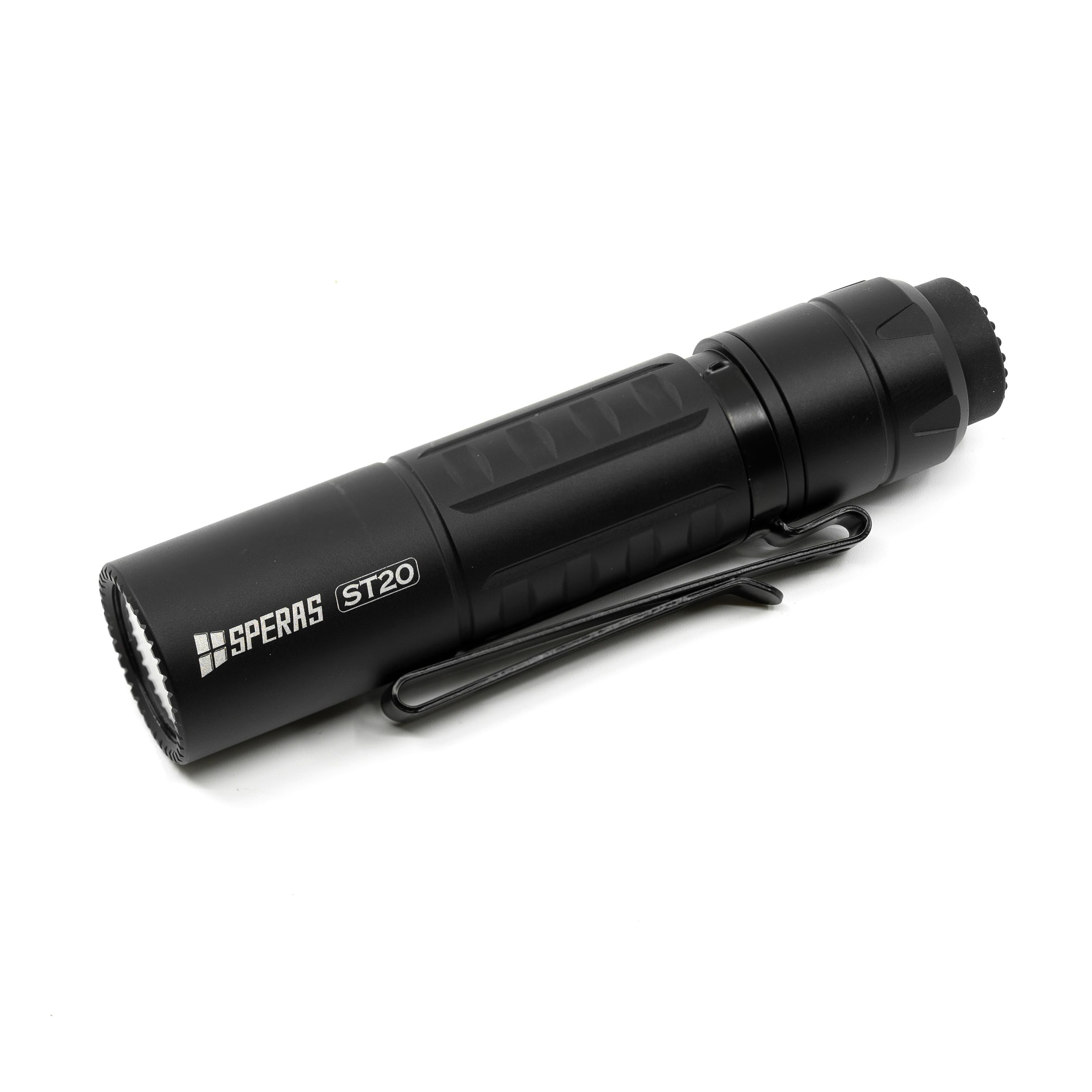 Torcia ricaricabile della polizia basata sul modello E21, dal quale prende in prestito l'interruttore tattico in gomma che, premuto lateralmente, consente di passare direttamente alla modalità strobo. Il grande vantaggio di questo interruttore è la facilità d'uso anche indossando guanti da tiro o invernali. Premendo il pulsante è possibile passare tra quattro modalità standard (turbo, alta, media, bassa), mentre la torcia utilizza LED Luminus SST40 10A di alta qualità per raggiungere una potenza massima di 1300 lumen con una portata di 175 metri. Il corpo della torcia è realizzato in lega leggera di alluminio aeronautico 6061 con grado di protezione IP68. Il corpo è dotato di una pratica clip metallica per agganciarlo facilmente all'attrezzatura.