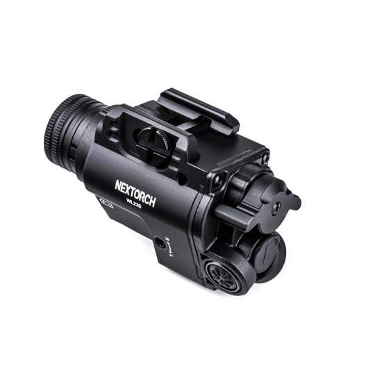 Torcia tattica a pistola con laser rosso integrato per facilitare la mira. La torcia è realizzata in resistente lega di alluminio e soddisfa lo standard di resistenza IPX4. L'alimentazione è fornita da due batterie ricaricabili di tipo 16340, ma in caso di necessità è possibile utilizzare due batterie non ricaricabili CR123A. La potenza massima della torcia è di 1300 lumen con una portata di 180 metri. La torcia è compatibile con le classiche guide Picatinny e può essere utilizzata con armi corte; acquistando un telecomando, la torcia è adatta anche per armi lunghe.