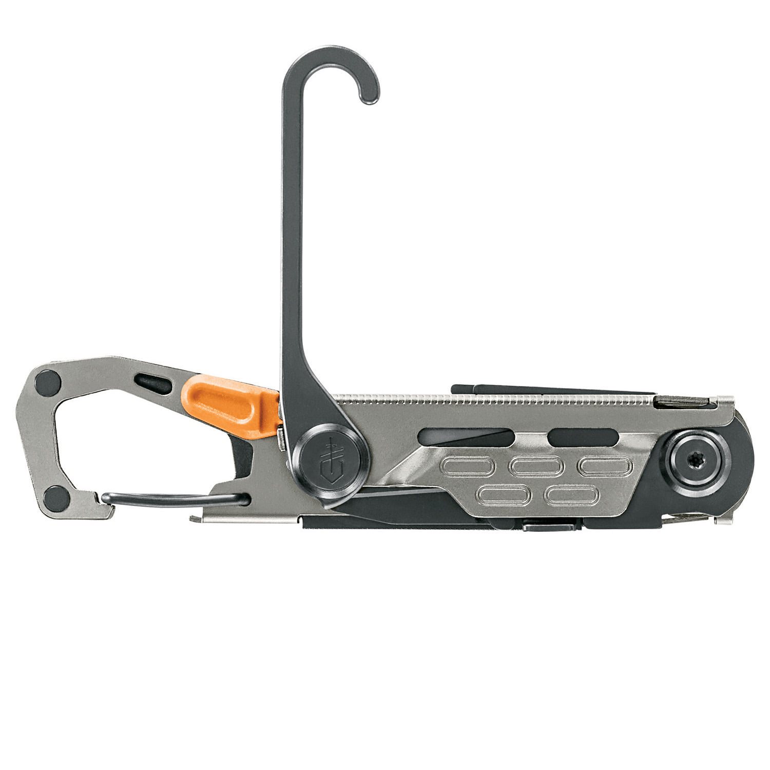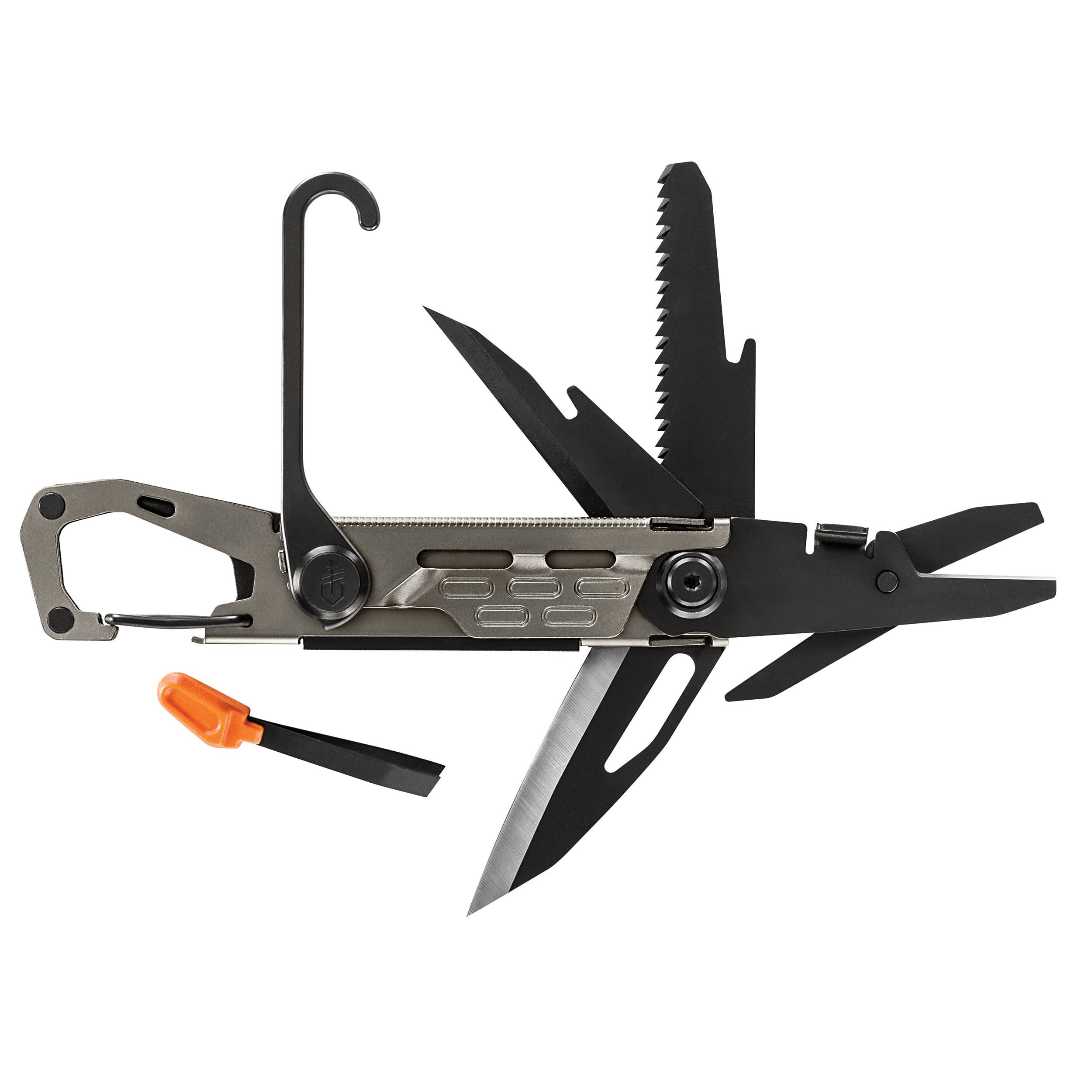 Utensile tascabile multifunzionale dotato di una serie completa di attrezzi, apprezzabile sia sul lavoro che all'aperto. Nonostante la sua struttura robusta in acciaio inossidabile, lo strumento è relativamente leggero (114 g) e, grazie al profilo basso e al moschettone integrato, può essere facilmente fissato a qualsiasi cinturino, zaino, ecc. La lama con tagliente liscio è fissata con un affidabile blocco Linerlock.